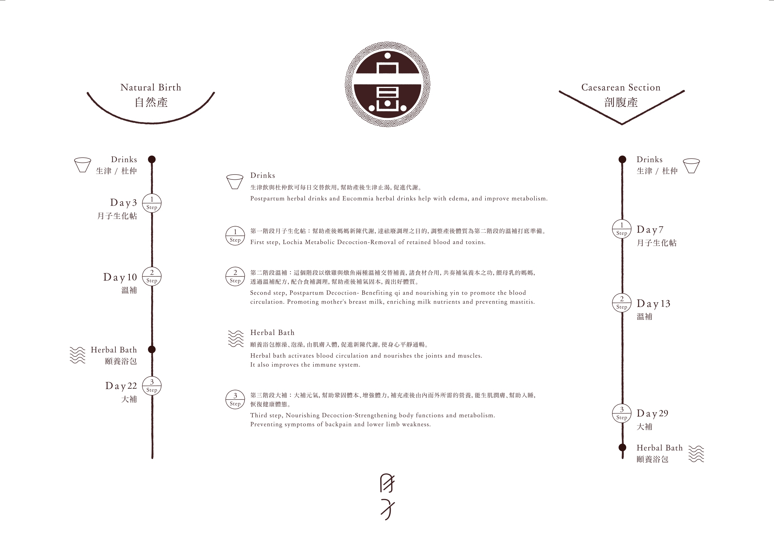 2. 第二階段『溫補』,補氣養本,以溫補方式調整產後媽媽的體質。餵母乳/不餵母乳,兩種配方可供選擇。