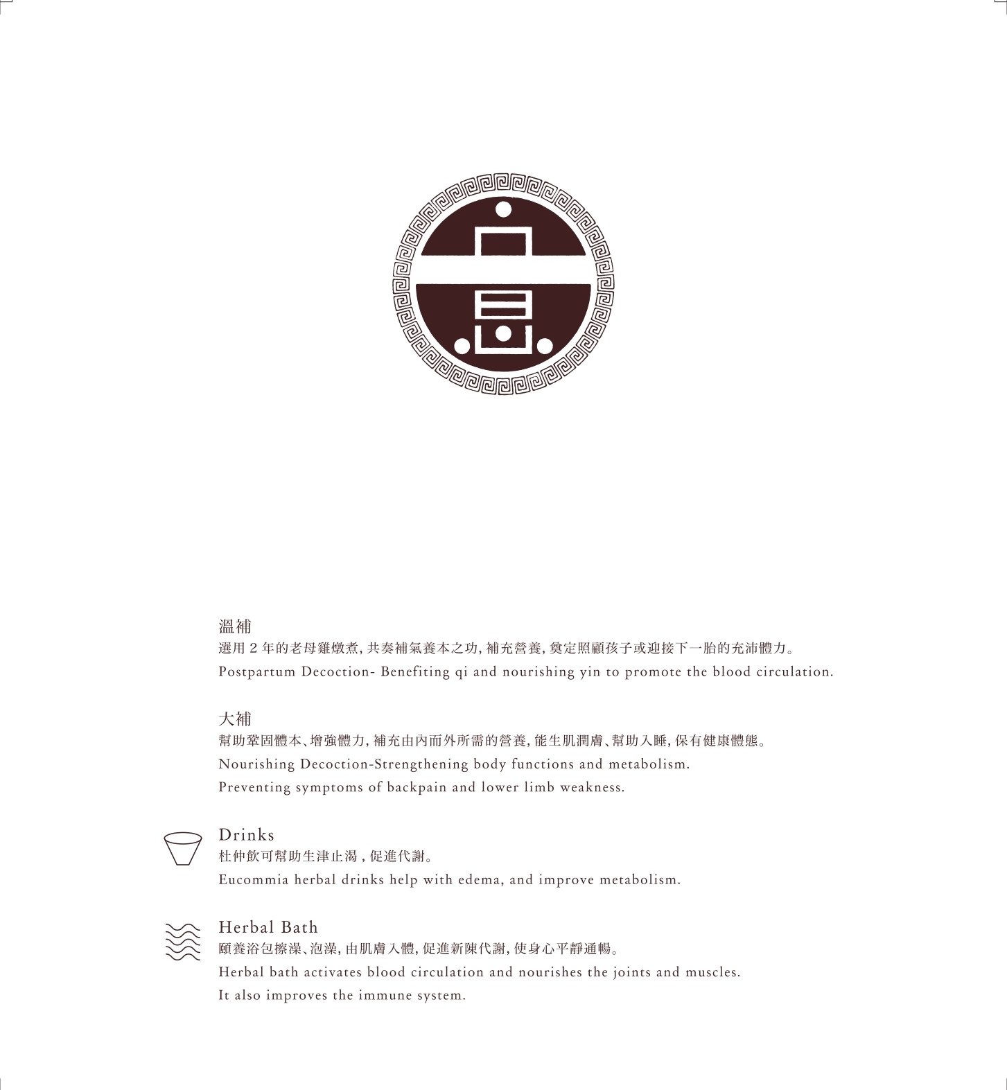 產後頤養浴包通過產後的身體特性,無論是泡腳、泡澡、擦澡或是洗頭,可潤肌美膚,溫暖循環,身心通暢,恢復生機。