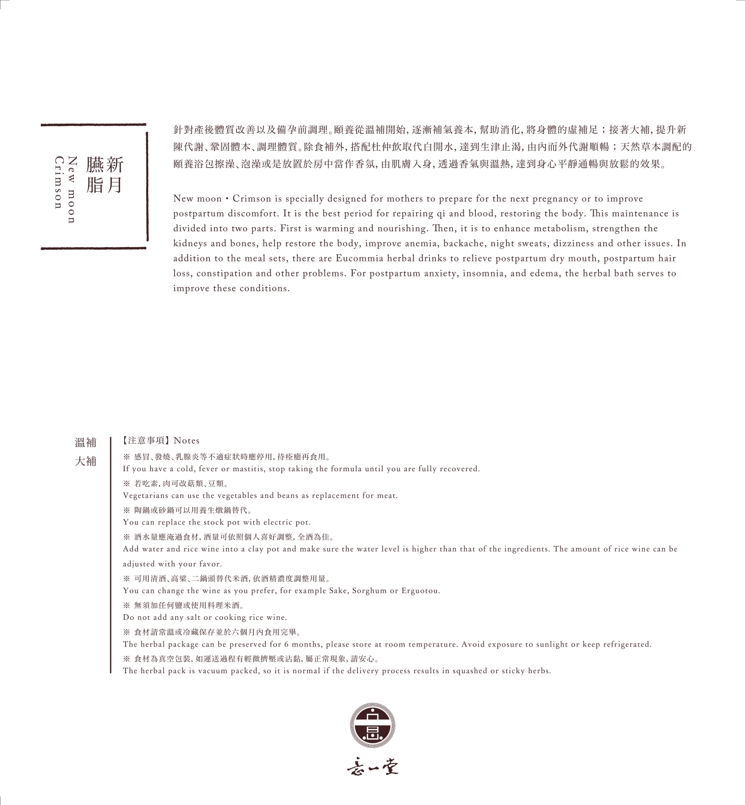 2. 第二階段『溫補』,補氣養本,以溫補方式調整產後媽媽的體質。餵母乳/不餵母乳,兩種配方可供選擇。