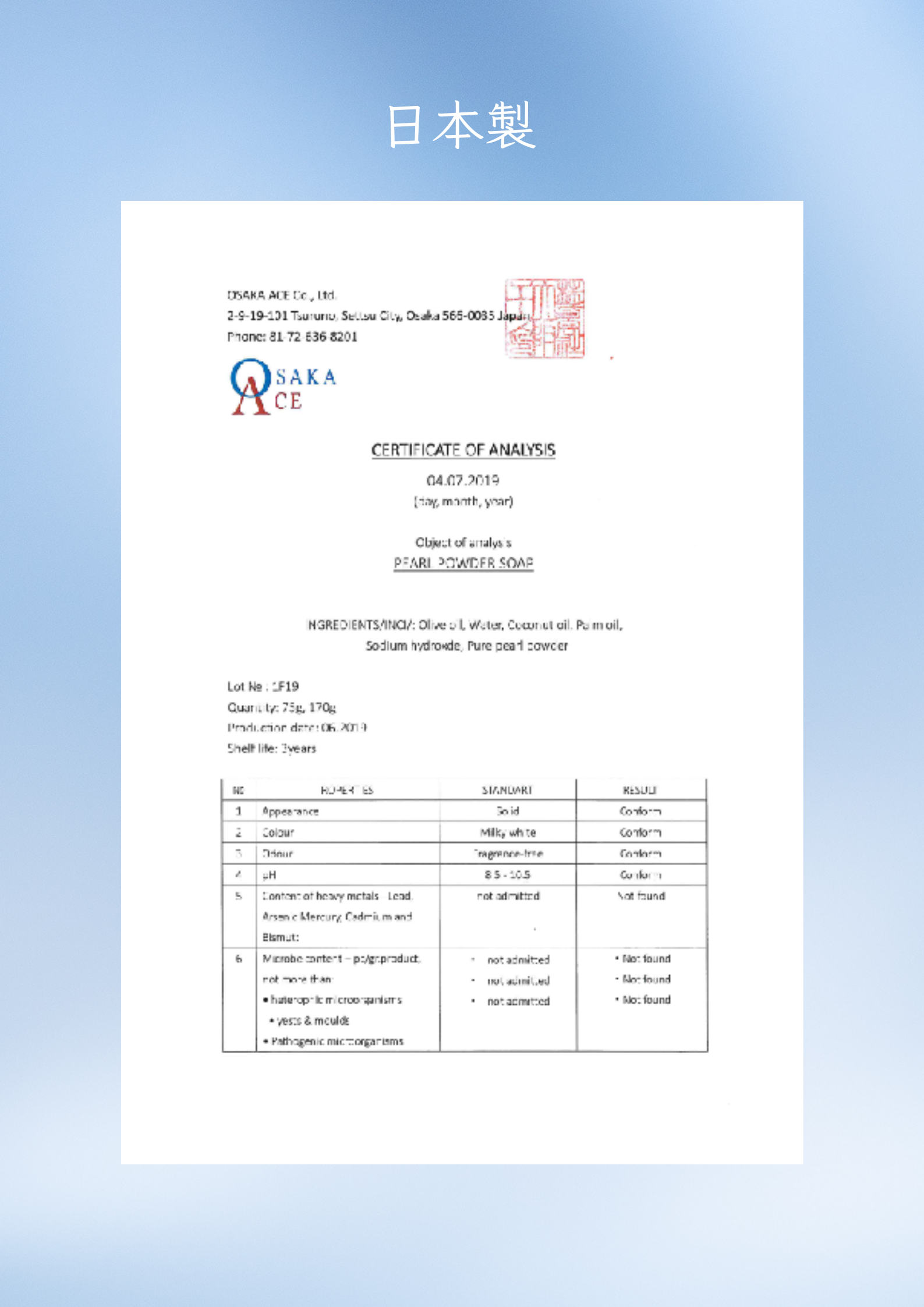 成分:橄欖油、水、椰子油、棕櫚油、氫氧化鈉、天然真珠粉